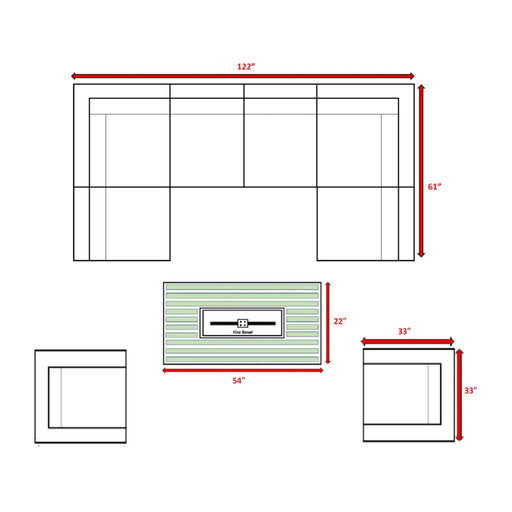 LSI Patio FurnitureComplete 9-Piece Set: Includes sofa, sectionals, armchairs, fire pit table, and 18 cushions Ultra-Comfortable Cushions: 5in. thick seat and 14 hig...
