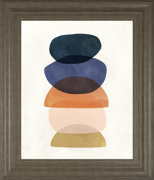 Classy LivingThis captivating abstract art piece features a serene stack of translucent pebble-like shapes in deep teal, navy, burnt orange, soft peach, and mut...