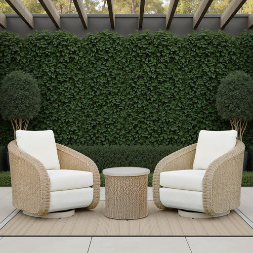 Original price $3,880.00 - Original price $3,880.00Original price$3,880.00$3,880.00 - $3,880.00Current price $3,880.00Pavilion - 3-Piece Outdoor Conversation Set (Swivel Club Chairs & End Table) - White / Natural