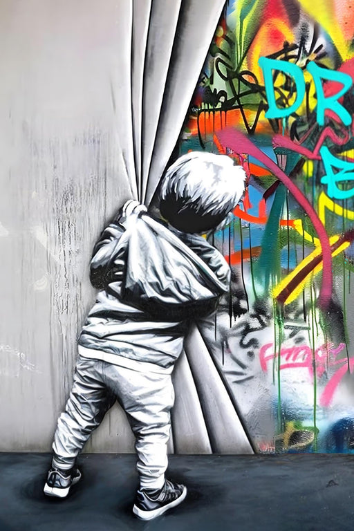 Classy Living“Pull it Back” captures a poignant moment of childhood curiosity and wonder through a striking hand-painted gloss canvas. This contemporary graphic...