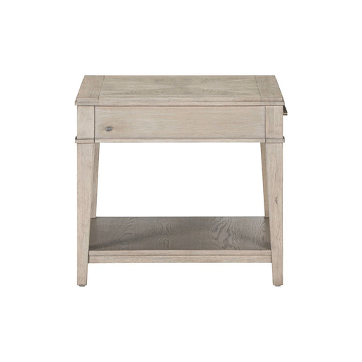 Liberty FurnitureElevate your space with the Modern Farmhouse drum end table. Crafted of poplar solids with knotty white oak veneers, this piece features heavy dist...