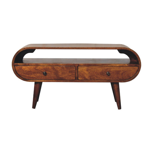 Artisan FurnitureArtisan Furniture Solid Wood Rounded Entertainment Unit - This solid wood media unit has been constructed from 100% solid mango wood in a finish an...