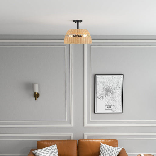 Ashcroft FurnitureFarmhouse Style: The Twinkle Double Lights Semi Flush fixture combines a black metal finish with a rattan shade, offering a rustic charm that enh...