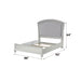 The Maverick bedroom collection provides a commanding presence in any bedroom. This contemporary panel bed features a fully padded headboard with low profile footboard, crafted with a transitional look that is an ideal addition to your bedroom. The headboard is accented with a sparkling Rhinestone inlay in a luxurious platinum finish, transforming a room from ordinary into something interesting and sophisticated.