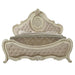 The Ragenardus collection harmonizes traditional details with functional design to accommodate today's styles. This bedroom collection features vintage white veneers, curved panel HB, button tufted headboard/footboard, crown & raised scrolled work ornamental trim and hand-carved style wood drawer overlays throughout all case pieces. The ample storage case pieces, beveled mirror, top Felt-Lined drawers, and metal glide make this set truly elegant and will be a great addition to your home.