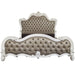 Versailles II - Queen Bed - Vintage Gray Synthetic Leather & Bone White