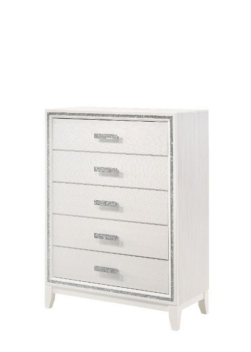 ACMEThe Chantelle Chest features five felt-lined pull-out drawers with delicate drop handles and an pearl white finish. The 1st Avenue collection striv...