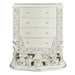 Bringing a modern approach to the classic ornate Rococo style, the Adara bed blends in contemporary touches with traditional design details. The PU adds a fresh approach to the intricately embellished bed. The antique white is embellished with light gold hand brushed details to make the floral motifs pop. This is one statement piece that will impress everyone.