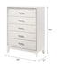 Classic design with touches of modern aspects makes this Haiden Chest ideal for any bedroom. The piece offers a rectangular table top and five storage drawers for displaying or organizing. It also features a glamorous shimmering accent trim that adds richness to design. The drawer handles carryover the same shimmering silver to tie them all together to create a cohesive look. The black finish makes it easy to fit into already existing decor.