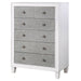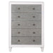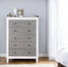The Katia collection is perfect for creating a modern rustic or farmhouse aesthetic. Merging old and new design features and finishes. The bed features a channel-tufted headboard and footboard in gray linen that pops against the white frame. The case goods fronts are finished in a rustic gray and offer plenty of storage with their ample drawers to fit all your belongings and keep your bedroom organized.