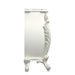 Luxurious style, sophisticated charm, and lustrous finishes are all included in the Vanaheim Bedroom Collection. Extravagant scroll floral design with gold trim accent creates classic appeal and timeless silhouettes. Button tufted headboard and footboard add texture and dimension to the panel bed. The matching casegoods in an antique white finish echo the overall design of the collection.'With so many irreplaceable characters, the Vanaheim Bedroom Collection will work beautifully in a variety of other spaces.