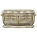 Feast your eyes upon the decadence and true luxury of the Danae collection of furniture! This striking bed defines opulence! Created to make a statement, this regal bed invites you to hold court in its divine carved curves and details. The Champagne finish and gold accents help enhance the sculpted features. Upholstered in luxurious PU, this bed is a stylish statement piece for any bedroom.