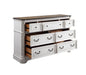 Classic design elements never go out of style the Florian collection is designed for the traditional home. The antique white finish gives off the right amount of distressing for a worn-in feel. The bed features a button-tufted portman-style headboard that is upholstered in a gray PU for added contrast. The footboard features raised panels to add visual interest. Case goods offer a natural wooden finish for contrast against the antique white finish. The drawers are full-extension and offer French dovetail fronts and English dovetail back construction. Comfortable, timeless, and stylish, the bed will bring a strong design presence to a room.