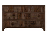 6 Drawer, Dresser. Transform your space with this modern bedroom set. Crafted from engineered teak and sustainable mango wood, this collection combines lasting durability with natural beauty. The rich brown multi-step lacquer finish adds warmth and depth to the furniture. The Praga Dresser has six spacious drawers for ample storage. The aged golden handles add a touch of sophistication, while its short, sturdy legs provide balance and stability, making it a versatile addition to any space.