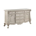 Create the bedroom of your dreams with our Bently dresser, which includes a magnificent frame that is adorned with stunning floral and scrolled details. This dresser features six ample drawers and two cabinet spaces that will make it convenient for you to keep a mess-free bedroom, and easily store blankets and clothes. The glides ensure that the drawers open and close smoothly. The beautiful, scalloped edges add refinement and visual interest, and the scroll legs are beautiful and sturdy. The champagne finish is rich and sophisticated.