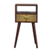 - Eden Mini Nightstand - This Eden Mini Nightstand is made of solid mango wood, with a chestnut finish structure. It has 1 drawer and 1 open shelf for convenient storage space and ample space on top to display a photo frame, candle or lamp. Additionally, the exquisite craftsmanship and beautiful gold brass sheet provide a beautiful carved pattern on the drawer front making this an all-round eye-catching piece of furniture in your bedroom