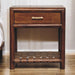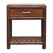 - Artisan Furniture Solid Wood Chestnut T-Bar Nightstand - Introducing our Chestnut T-Bar Nightstand, this eye-catching bedside, is crafted from 100% solid mango wood with a chestnut finish. Its features include 1 spacious drawer, 1 woven open shelf, straight legs, and a shiny gold t-bar handle. It's the ultimate blend of style and functionality. Elevate your bedroom with this essential and elegant piece by placing it next to your bed.