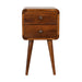 - Curved nightstand - Endlessly versatile, this curved nightstand table makes a perfect stand for nibbles, drinks, or a lamp. It will prove handy all over your home and is made from 100% solid mango wood and has a fine finish. It has curved edges which will fit into any home/living space. It also comes with 2 drawers that come with shiny knobs and 4 Nordic style legs.