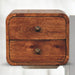 - Curved Wall Mounted Bedside - Inspired by our curved range, this minimalistic wall-mounted unit has been constructed from 100% solid mango wood in a finish and features 2 drawers that feature shiny knobs. This piece is perfect for storing any bits and pieces you wish to keep close by before bedtime. Its neat and clean design can easily be mounted on the wall without the fuss of any legs. Caution! Do not sit on the unit.