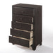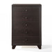The Madison chest is finished in a rich espresso color with 5 drawers. The generous sized case piece is ideal for storing your clothing. All drawers have English dovetail with center metal glides.
