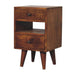 - Mini Classic Multi Nightstand - Obtain an effortless look with our Mini Classic Bedside. It is constructed from 100% solid mango wood and the sleek design is complemented by shiny brass knobs and nordic style legs as well as 2 drawers and an open slot. The perfect piece to use alone or pair with different styles and finishes of furniture. This petite product is part of Recession Collection.
