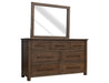 Bedroom Mirror. Novus Lodge is a revamped version of our bestseller, the Lodge collection. The simplicity of its shapes and warm color palette makes it a timeless collection. Novus Lodge showcases lightly distressed premium woods such as poplar and oak in a warm brown finish that enhances the beauty and character of the wood.