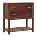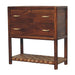 - Features: 00% solid mango wood,Chestnut finish,two compact drawers,brass handles,braided bottom shelf,handcrafted,sustainable