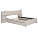 Queen Size Upholstered Platform Bed With Reading Lights, Drawers, Trundle And Shelves - Beige