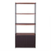 The Sara bookcase versatility and style will blend masterfully in your home. The storage function includes 3 shelves & 2 front doors, offering plenty of space to keep your favorite books or decorative accessories. Carefully constructed from selected wood and veneers in walnut finish, and contrasting metal base in sandy black finish which gives this piece a industrial and sleek appeal.