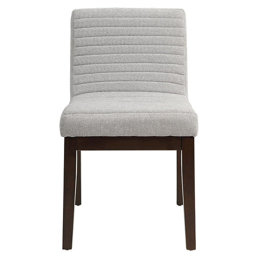 Coaster Fine FurnitureThis upholstered dining side chair brings tailored comfort and refined texture to the dining room. Wrapped in soft grey fabric, its gently contoure...