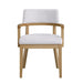 • Light Color Scheme: The light-colored wood and white upholstery create a neutral color scheme, making the chair versatile for various room styles.