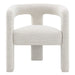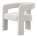 The Lomas collection side chair featuring a soft beige boucle fabric, exudes modern sophistication and comfort. Its unique design and plush texture make it a stylish addition to any living space, creating an inviting atmosphere for relaxation and conversation. Perfect for both contemporary and classic interiors, this chair seamlessly blends elegance with functionality, ensuring it stands out as a centerpiece in your home.