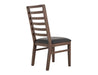 Chair. Experience the Walnut Collection Chair, made from melina wood. It has a translucent lacquer finish in a rich reddish-brown color that highlights the wood's natural beauty. The chair features a ladder-back design and a cushioned seat covered in brown fabric for comfort and style. Its sturdy legs and simple design make it a great fit for your dining room or any space in your home. The Walnut Collection Chair is both functional and stylish, making it a lasting addition to your home.