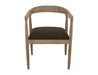 Upholstered seat, wooden armchair. The White Teak chair, inspired by organic design principles, is carefully crafted from melina wood and finished by our artisans in ivory color. Its seat is upholstered in faux leather, adding sophistication and comfort to your dining experience.