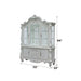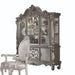 Hutch & Buffet • Arched Hutch: Touch Light & 2 Glass Doors (2 Glass Shelves & Back Mirror Inside) • Buffet 3 Drw & 2 Wooden Doors • Oversized Scrolled Trim, Leaf Crown Motif, and Post-Leg (Poly Resin with Antique Contrast Finish) •• Drawer: GLIDE Side Metal (Ball Bearing, Ext 3/4), DOVETAIL English, Felt-Lined Drawers