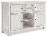 This dining server is sure to impress come mealtime. With its antiqued white finish and planked effect cabinet doors, farmhouse-style storage has never been so fashionable. All that’s missing is you and your family.
