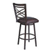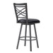 The Armen Living Fargo transitional barstool is an ideal addition to the contemporary household. This stylish barstool features a sturdy metal frame and full 360 degree swivel functionality. The unique cross-pattern back style is unique to the Fargo, making it a standout item sure to turn heads at your next gathering. this elegant barstool also features a footrest for added comfort and stability. The Fargo's metal frame is Auburn Bay finished while the seat is upholstered with faux leather.