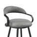 Revitalize any space with the sleek and inviting charm of the Gardenia Swivel Stool in Faux Leather and Metal by Armen Living. The refined profile and sleek curves of our barstool offer instant appeal and comfort. With a floating back and curved arms, our barstool is ready to make a chic statement. Its hugging back and round seat are covered in easy-to-maintain faux leather to offer lasting style and comfort. The slim arms flow seamlessly into the small but comfy backrest. Perched on sleek, tapered legs, our modern barstool adapts to any space from your kitchen to your home office. It lends a dynamic seating solution for your kitchen island, pub table, home bar, or adjustable desk. The built-in, circular footrest relieves pressure on your legs and back to offer a more comfortable seating experience. Our counter stool includes a smooth, 360-degree swivel function, which allows you to turn and change directions with ease to promote smooth-flowing conversations in any arrangement.