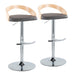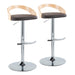 Grotto - Contemporary Adjustable Barstool With Swivel With Rounded T Footrest (Set of 2) - Chrome / Natural / Brown