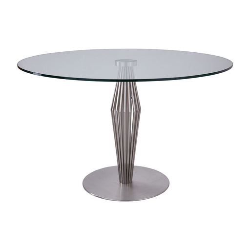 Armen LivingThe Lindsey round dining table with 48" clear tempered glass top with stainless steel base is a beautifully made table that will add style and beau...