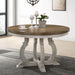 Timeless and charming, this Cillin round dining table lends a cottage chic vibe with an antique white finish frame and pedestal base. Pair this table alongside French country decor in a rustic-style dining room to add some bright cheerfulness. Additionally, this table offers a weathered oak tabletop. This Cillin dining table creates a cozy environment where you and your guests can enjoy many hours of good conversation and delicious meals.