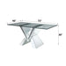 Cultivate a contemporary aesthetic in your entertainment ensemble with this distinctive Noralie dining table. Offering a modern twist on a classic pedestal-style silhouette, this design showcases an angular base with mirror and faux diamond inlay and unique X shape pedestal base. Sleek and stunning, this contemporary table is complemented by the 15-mm tempered clear glass top. Both elements have come together to produce a truly visionary table that will make dinner parties all the more stylish. Enhance your room Decor with this stunning dining room table.