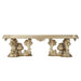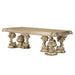 There is nothing more sophisticated and luxurious than the Seville Dining Room Collection that makes anyone catch their breath at first glance. Luxuriously carved ornaments and lustrous gold finishes on wooden frame set the room's opulent tone. The double pedestal base bestows a classic silhouette on the rectangular dining table, while the dining chairs are beautifully designed with gentle curves and padded seats. Matching curio and server help you create a practical, stylish, and organized space. Indulge in lavish comfort with the Seville Dining Room Collection.