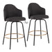 Ahoy - Contemporary Fixed Height Counter Stool Round Gold Footrest (Set of 2) - Charcoal / Black