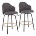 Ahoy - Contemporary Fixed Height Counter Stool Round Gold Footrest (Set of 2) - Gray / Black