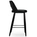 - Features Black Brushed Wood chair back, four sturdy legs metal foot rest and foam padded seat