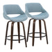 Fabrico - Mid-Century Modern Fixed Height Counter Stool With Round Footrest (Set of 2) - Walnut / Blue