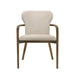 • Elegant cream fabric pairs with walnut-toned wood to bring soft contrast and visual balance to your dining setup.