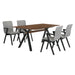 The Armen Living Laredo and Varde mid-century dining set promises an unmatched degree of comfort and dependability, making it an ideal choice for the contemporary dining room. The Laredo's modern design boasts a black frame, brilliantly complemented by the table's stylish Walnut Veneer top design. This combination finds its ideal match in the Varde's sleek walnut frame. Foam padded and exceptionally comfortable, the Varde offers a supportive frame wrapped in a sophisticated Gray fabric package. The Laredo/Varde combination is designed to fit in any dining room, but features a versatile appearance that makes it perfect for just about any room of the house. The Laredo/Varde set comes with 1 dining table and 4 dining chairs.