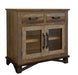 2 Drawer 2 Doors Server. The Loft Brown Collection is constructed using pine wood that has been hand-stained and distressed, complemented by hand-forged iron hardware. This beautiful collection features a wide range of high and low finish colors, making it a striking addition to any room décor you choose to design.